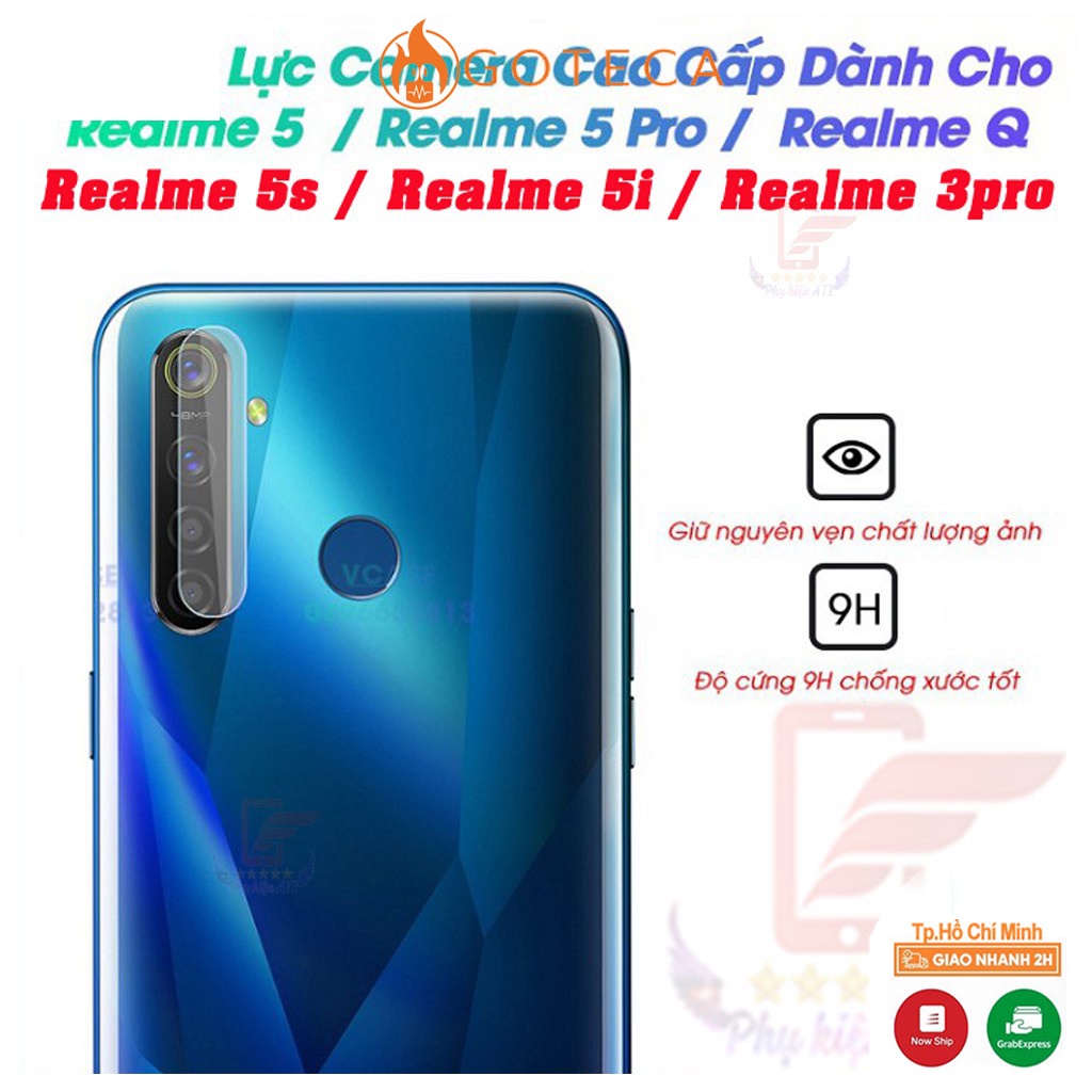 Kính Cường Lực Camera Cao Cấp Dành Cho Realme 5 / Realme 5 Pro / Realme Q / Realme 5s / Realme 5i / Realme 3Pro 1/ Chi tiết: + Chất liệu 9H chống xước tốt + Độ dày 0.3 mm, không ảnh hướng đến việc chụp ảnh + Bảo vệ camera khỏi bụi bẩn và các tác động từ bên ngoài