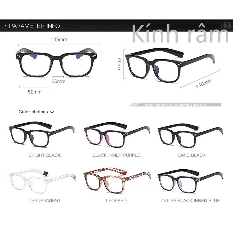 Loại sản phẩm: Phụ kiện mắt Phụ kiện mắt: gọng Mã sản phẩm: 15919 Kiểu họa tiết: Hình học Dành cho: Unisex Chất liệu gọng: Nhựa Chất liệu gọng: Acetate