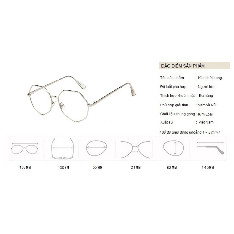 Giới thiệu Kính Giả Cận, Gọng Kính Cận Nam Nữ Mắt Đa Giác To Cá Tính Không Độ Hàn Quốc - BLUE LIGHT