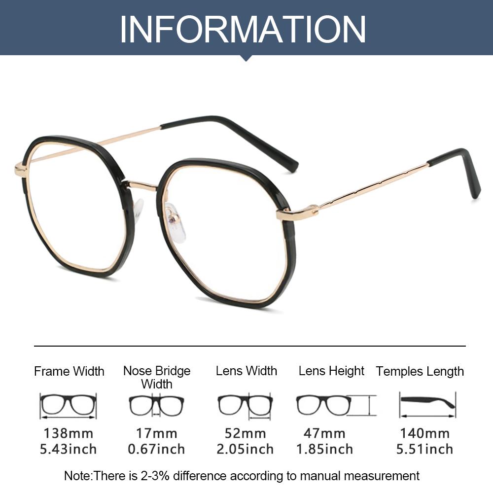 2.Xin lưu ý rằng sự khác biệt nhỏ về màu sắc có thể chấp nhận được do ánh sáng và màn hình . Kính chống ánh sáng xanh Kính mắt máy tính Kính cận thị Kính quang học Kính mắt Kim loại Khung lớn Retro Siêu nhẹ Phụ nữ Đàn ông