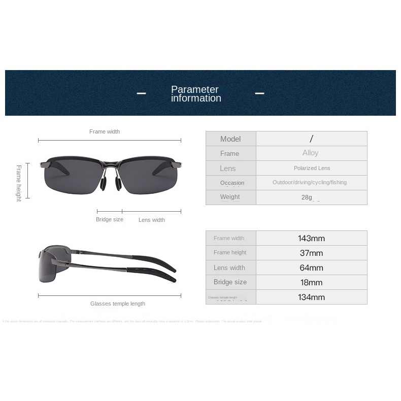 Phong cách: Khung hình bầu dục Cấu trúc: Nửa khung Màu sắc: phim đen khung đen xám, khung súng đen xám phim, phim khung đen, phim khung súng màu, phim khung đen nhìn ban đêm, khung súng nhìn ban đêm, phim khung đen đôi, khung súng đôi Phim Phân cực hay không: Có Khung màu: bạc, đen Chất liệu khung: Kim loại Hình dáng khuôn mặt phù hợp: mặt tròn, mặt dài, mặt vuông, mặt trái xoan, mặt nhỏ, mặt to Các yếu tố phổ biến: Internet người nổi tiếng pop Phong cách: Phong cách mới Các tình huống áp dụng: chống nắng, câu cá, du lịch, thể thao ngoài trời, đi xe đạp, mặc thời trang, lái xe, biểu diễn trên sân khấu, tiệc tùng Màu ống kính: vàng, xám, đen Áp dụng cho: Nam giới, chung Đặc điểm kỹ thuật: người lớn Chất liệu tròng kính: PC Phân loại tỷ lệ truyền: Kính râm màu loại 1 / ánh sáng Lớp chống tia cực tím: UV400 Phong cách: chuyển động, kim loại, giải trí, joker, retro, thời trang, cá tính, tinh tế, thanh lịch, lộng lẫy, nửa lưng, hướng tới, quần áo thể thao, thời trang, gió, văn học và nghệ thuật, thoải mái, hợp đồng