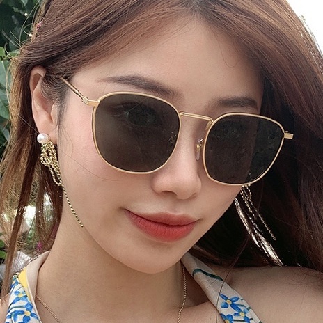 Giới thiệu Kính Râm, Kính Mát Nam Nữ, Mắt Vuông Gọng Kim Loại Dày Cứng Cáp Đen, Nâu - BLUE LIGHT