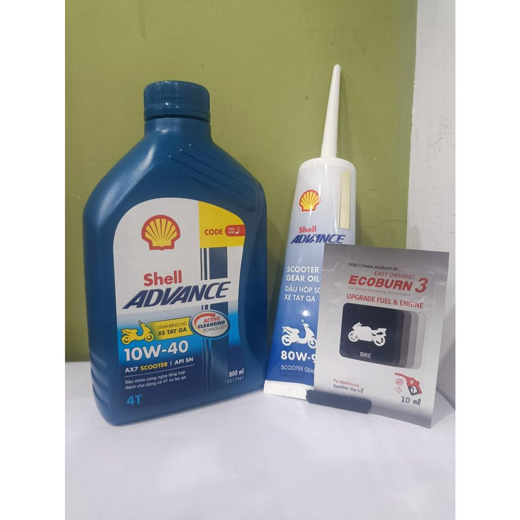 ( KM Tặng Gói Phụ Gia) Combo Nhớt Tay Ga Shell Advance Ax7 Scooter 10w40 0.8L ( 800 ml ) + Nhớt Lap Shell Gear 120ml