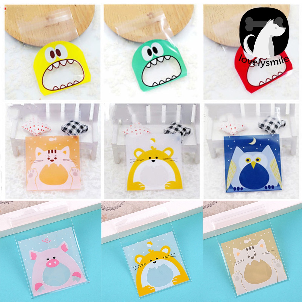 Giới thiệu L ~♨ Bộ 100 Túi Nhựa Đựng Bánh Quy Xinh Xắn