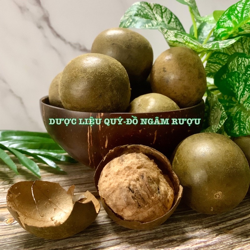 Giới thiệu Quả La Hán (La Hán quả to, già, không vỡ) giá sỉ 5-20 quả - La hán quả khô màu nâu vàng sẫm hơi bóng có lông nhung, hình tròn hoặc tròn dài, đường kính 5-8 cm.