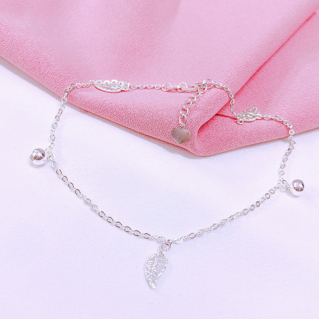 Giới thiệu Lắc chân nữ bạc mic chuông dây xích gắn lá nhỏ - Bạc Bibi