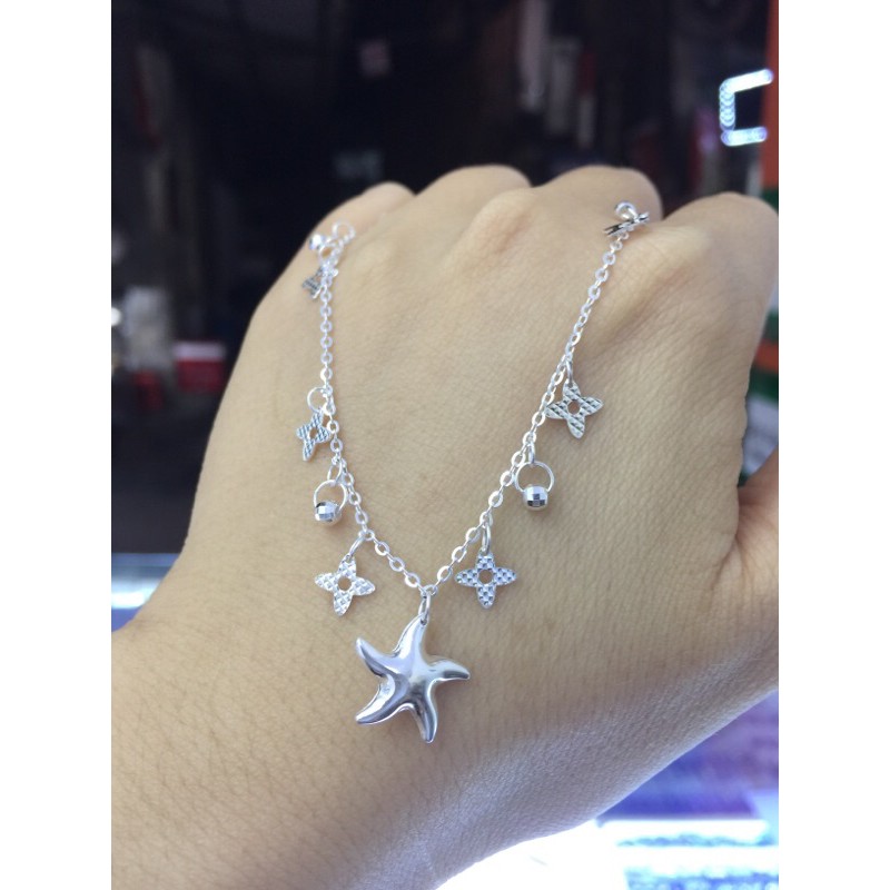 Giới thiệu Lắc chân sao biển phồng tua rua 4 lá bi bạc thật sắc sảo
