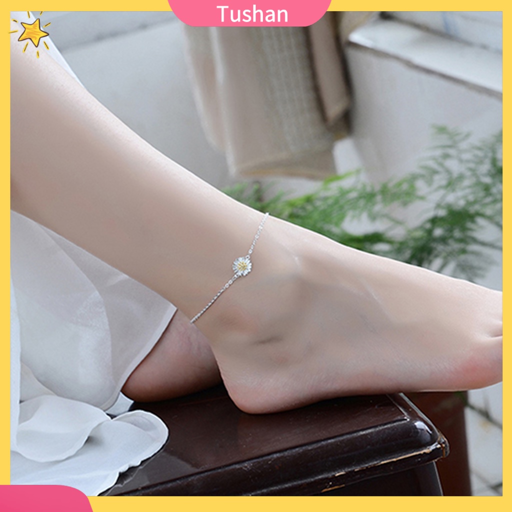Giới thiệu Lắc chân trang trí hoa cúc nhí mạ bạc đáng yêu cho nữ