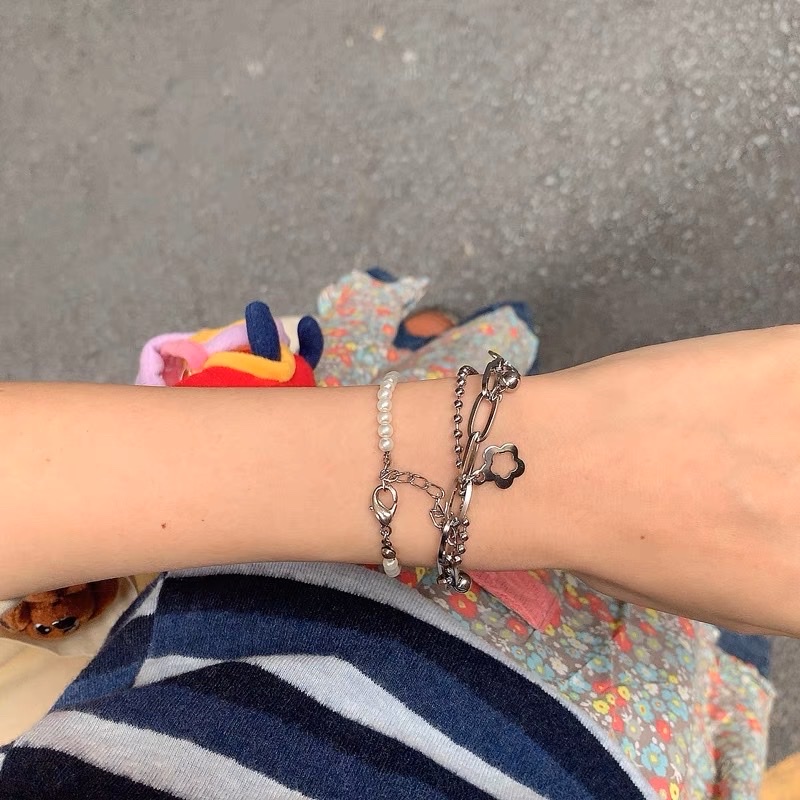 Lắc Tay Hai Lớp Hoa 5 Cánh Rỗng Phối Bi - Vani Store - TS000684