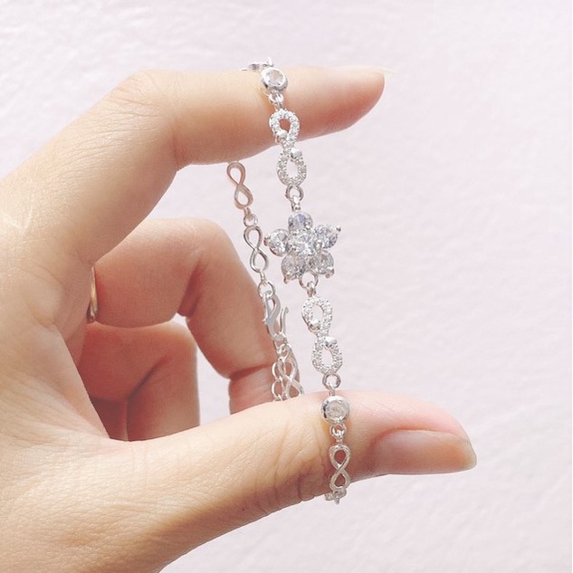 Lắc tay nữ bạc ta cao cấp mặt hoa đá