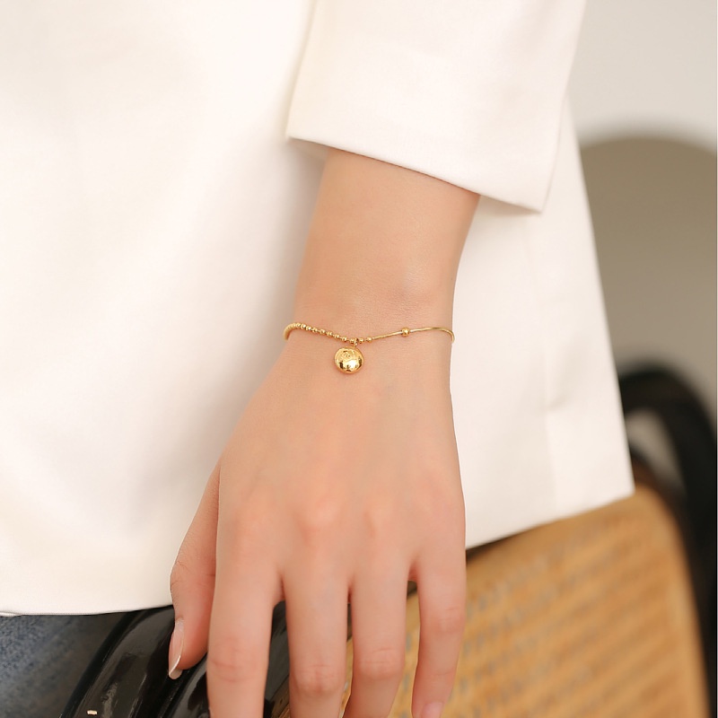 Giới thiệu Lắc tay titan không gỉ, vòng tay titan mạ vàng 18k dạng bi tròn xinh xắn khắc chữ may mắn phong cách ins hàn quốc