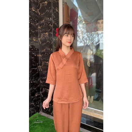 Giới thiệu Đồ Lam Đi Chùa #Bộ lụa pháp trơn 1 nút# Quần Áo Nữ