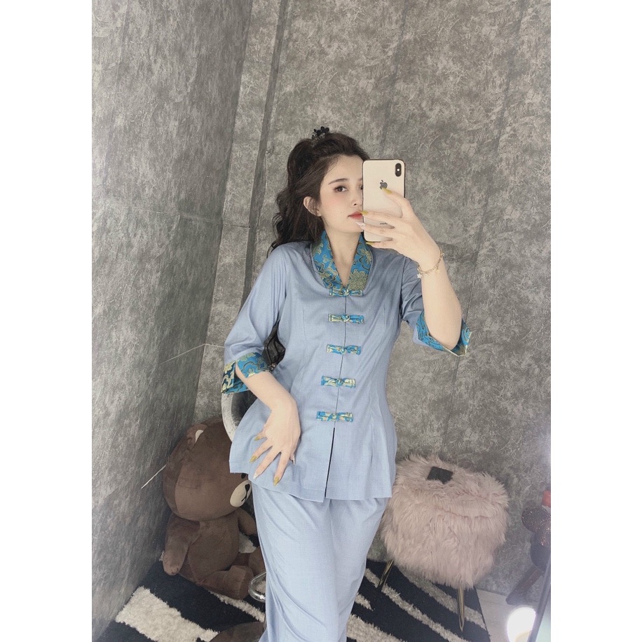 Giới thiệu Đồ Lam Đi Chùa # Bộ viền hoa lụa Hàn 2# Quần Áo Nữ Cao Cấp
