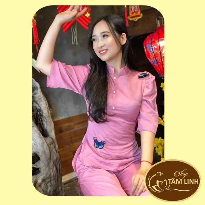 🔔THÔNG TIN SẢN PHẨM Đồ Lam Đi Chùa Cao Cấp Kết Cườm Thêu Bướm Cực Đẹp