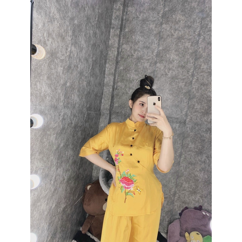 Giới thiệu Đồ Lam Đi Chùa #Mẫu Hoa Xuân Lụa Satin# Quần Áo Nữ