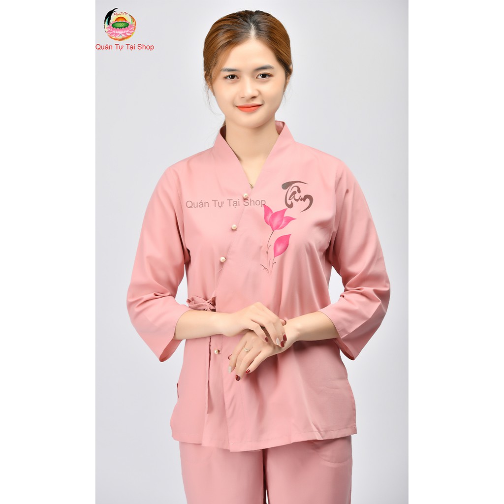 Chào mừng bạn đến với Quán Tự Tại Shop. Thông tin Bộ quần áo đi chùa thư pháp - 100% Hàng Mới, Có Sẵn Số Lượng Lớn, Giá luôn Tốt Nhất Xứng Tiền - Vải Kate Cotton Mịn Dày Dặn (vải Kate pha với sợi bông giúp vải dày hơn và thấm mồ hôi tốt hơn) - Phần tay áo thiết kế lửng, phần eo áo được may bó hơi ôm sát giúp tôn dáng, tạo đường cong. - Vải mềm mịn đẹp, thấm hút mồ hôi rất tốt, không xù lông, không phai màu, khi giặt không bị nhàu nát. - Màu sắc: Xanh lam, Hồng - Đường vẽ chữ thư pháp được phun vẽ kĩ thuật cao nên chắc chắn,ko bong tróc + Đường may tỷ mỷ cẩn thận đảm bảo chất lượng Hiện nay, trên thị trường có rất nhiều hàng nhái giá rẻ hơn nhưng chất lương rất kém (mặc dù nhìn trên ảnh thì giống nhau) khiến khách hàng bị nhầm tưởng và mua phải hàng kém chất lượng, đã gặp phải tình huống rất ngại ở chốn trang nghiêm : lúc làm lễ ngồi xuống đứng lên thì quần bị BỤC CHỈ ( đường may kém) . do vậy anh chị nên cẩn trọng và cân nhắc khi lựa chọn nhé. Quán Tự Tại Shop cam kết bán hàng chất lượng và uy tín.