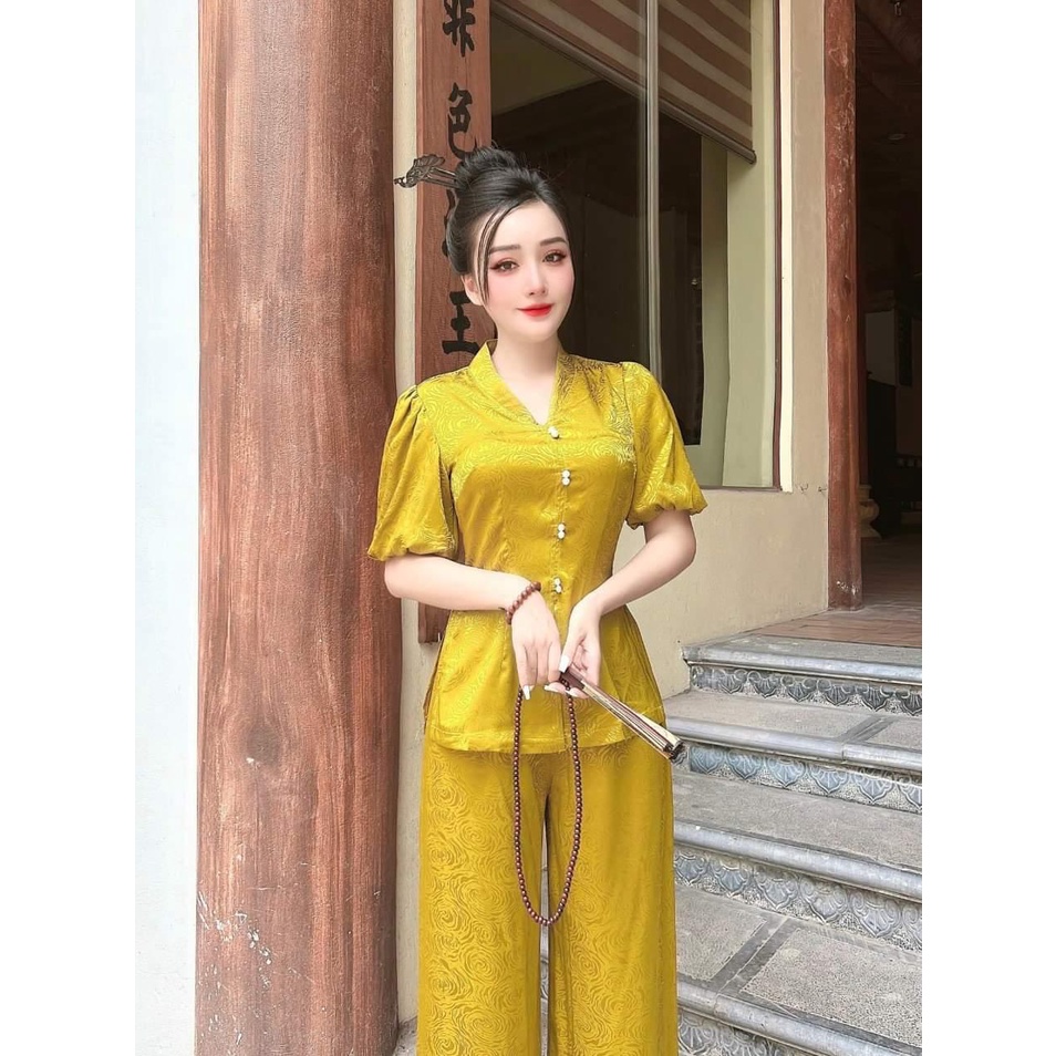 Thời Trang Nữ > Đồ truyền thống > Bộ > Đồ Lam Đi Chùa Nữ - Bộ Đi Lễ Chùa Đẹp Cao Cấp Trang Nhã Vải Gấm Cao Cấp Nút Ngọc Tay Phồng Đồ Lam Đi Chùa Nữ Bigsize