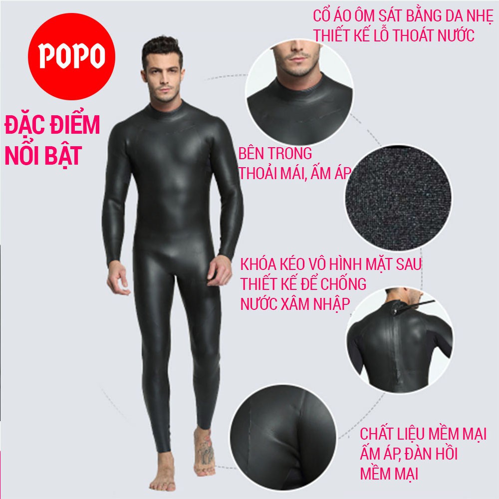 Bộ đồ lặn biển liền thân cho nam MY086 POPO quấn áo lặn nam chất phủ da PU dày 3mm ngăn nước, bộ đồ lặn giữ nhiệt giữ ấm