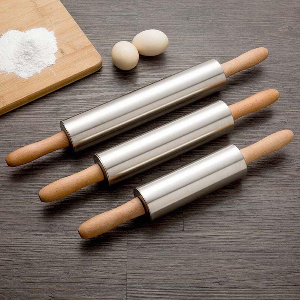 2. Thiết kế tay cầm phù hợp với thói quen của mọi người và dễ sử dụng Cán ghim Bột Con lăn Dụng cụ nướng Dụng cụ làm bánh Phụ kiện nhà bếp cho mì ống Bánh quy Bột nấu ăn Tay cầm bằng gỗ Thép không gỉ Chống dính