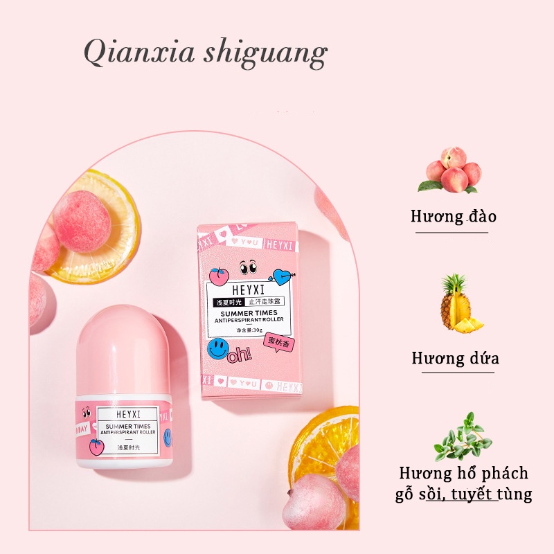 * Thông tin sản phẩm Lăn nách khử mùi Heyxi 30ml hương hoa tự nhiên giảm mùi hôi cho vùng da dưới cánh tay Zentop: - Tên sản phẩm: Lăn khử mùi - Thương hiệu: Heyxi - Dung tích: 30ml - Xuất xứ: Nội địa Trung -Mùi hương: +Hương đào ngọt ngào (Hương đầu: Hoa nhài, Phong lữ; Hương giữa: Dứa, nho đen; Hương cuối: Hổ phách, Xạ hương, Tuyết tùng;) + Hương hoa cỏ và trái cây tươi mát (Hương đầu: Cam đỏ và cam đắng; Hương giữa: Hoa nhài, phong lữ; Hương cuối: Hương gỗ đàn hương, hổ phách;) + Hương gỗ thanh lịch (Hương đầu: Chanh Calabria; Hương giữa: Nước biển, muối biển; Hương cuối: Texas Cedar) -Thành phần: Hoa cam đắng, vitamin C, cây phỉ Bắc Mỹ, РСА, Chiết xuất răng ngựa
