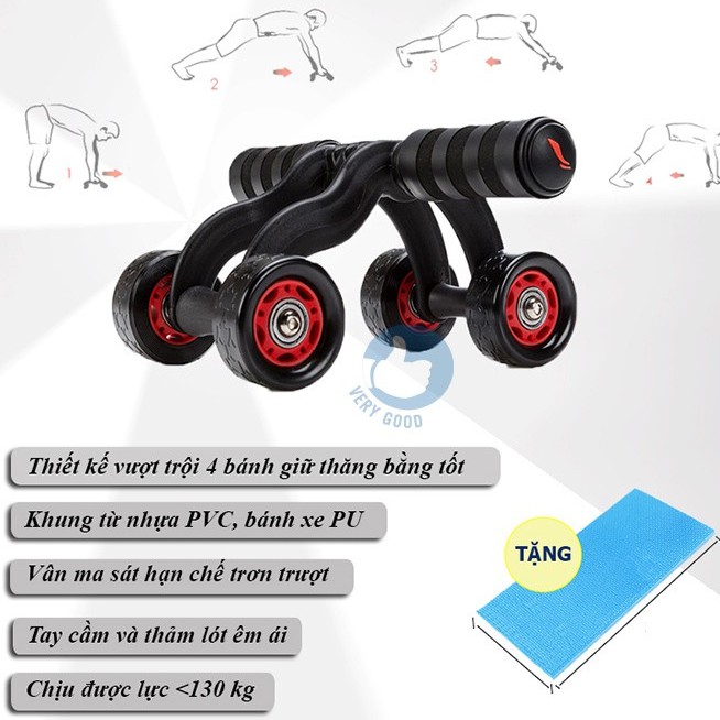 Giới thiệu Con lăn tập cơ bụng 4 bánh, 2 bánh cao cấp tặng thảm lót gối