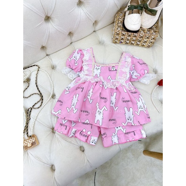Giới thiệu Bộ lanh lụa phối ren cho bé gái siêu mềm mát(15-25kg)