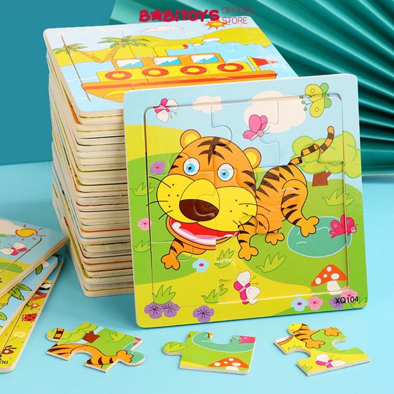 Tranh ghép hình 9 miếng in hình ngộ nghĩnh bằng gỗ cho bé, đồ chơi xếp hình 9 miếng - Tranh ghép hình có nhiều mẫu về các con vật, phương tiện giao thông với màu sắc sinh động thu hút sự chú ý của bé. Giúp bé tăng nhận biết được hình dạng, màu sắc của con vật, xe cộ.