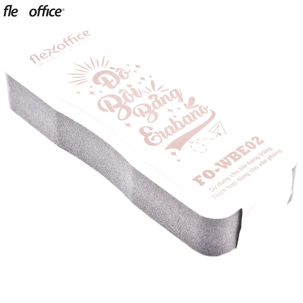 Thông số kĩ thuật : Tên danh mục Bông Lau bảng Thương hiệu Flexoffice Đóng gói 20 cái / hộp, 12 hộp/thùng Kích thước 135 x 55 x 23 mm Xuất xứ Việt Nam Dễ dàng lau sạch bảng trắng khi viết bằng bút lông bảng, được sản xuất bởi Tập đoàn Văn phòng phẩm Thiên Long. ĐẶC ĐIỂM CỦA LAU BẢNG TRẮNG - Lau bảng trắng Flexoffice FO-WBE02 dùng để lau sạch bảng trắng - chất liệu mousse eva mềm mại nhẹ nhàng không gây mỏi tay - Vải polyester giúp lau sạch mặt bảng nhanh chóng.