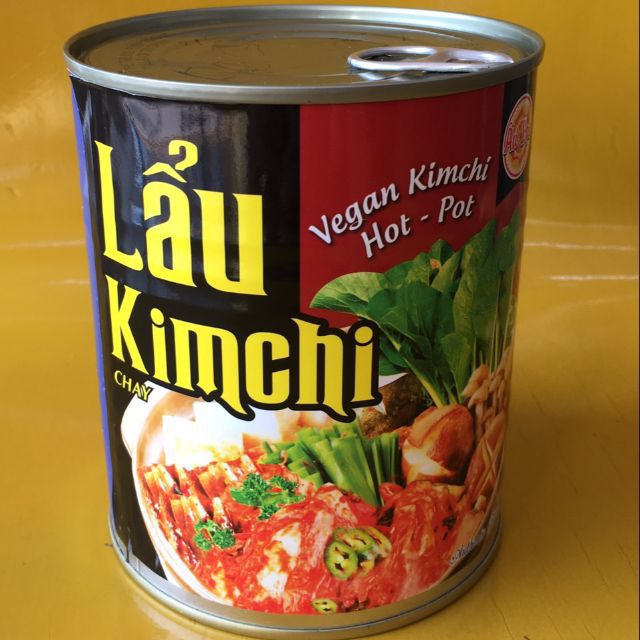 Thành phần: Nước súp từ rau củ, thịt chay, gia vị chay, kim chi chay: 10%, đường, dầu đậu nành,.... Cách sử dụng: Khui lon và hâm nóng lại nước lẩu, ăn kèm với rau tươi, nấm, mì. Cách bảo quản: Để nơi khô ráo thoáng mát. Tránh nhiệt độ cao, ẩm ướt và ánh nắng trực tiếp. Sử dụng hết khi đã mở lon
