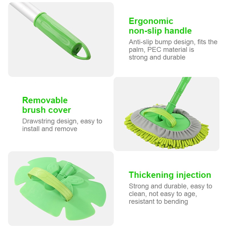 *100% Hàng mới, chất lượng cao * Thiết kế thân mật, dễ cài đặt. * Tóc lau dài 2,5cm ~ 3 cm. * Thanh lau bằng hợp kim nhôm có trọng lượng nhẹ và khó biến dạng. * Cây lau nhà rất nhẹ khi sử dụng, có khả năng hút bụi bẩn mạnh, siêu mềm không làm tổn thương sơn. * Bản thân cây lau nhà rất dễ lau chùi * Sử dụng: rửa xe, lau kính, lau nhà, gia đình.