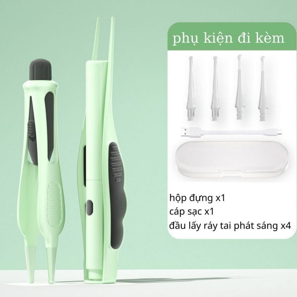 Bộ lấy ráy tai có đèn cao cấp, dụng cụ vệ sinh tai mũi an toàn tiện lợi cho gia đình - B3 ________________________________________________________________________ * Thông tin sản phẩm - Bộ sản phẩm gồm 3 món: gắp ráy tai và cây bút sẽ được ghép lại thành 1 khi sử dụng bạn có thể tách rời + 1 cây lấy ráy tai có đèn + 1 gắp ráy tai có đèn + 1 gắp rỉ mũi cho bé - Phụ kiện đi kèm gồm có + 1 hộp đựng + 4 đầu nhựa lắp vào cây lấy ráy tai + 1 cáp sạc cho dụng cụ * Chức năng - Giúp vệ sinh tai mũi cho bé và gia đình 1 cách an toàn và tiện lợi, 3 dụng cụ đều được trang bị đèn led giúp bạn dễ dàng lấy ráy tai từ sâu bên trong mà không bị che lấp hay sáng loé. - Chỉ cần lắp đầu vào cây bút và bật đèn lên là bạn có thể lấy ráy tai cho bé hoặc các thành viên trong gia đình một cách an toàn - Dụng cụ gắp để lấy các mảng ráy tai to và cứng * Lưu ý - Không sử dụng cho bé dưới 1 tuổi - Nếu trong thời gian dài không sử dụng bạn nên tháo pin và bảo quản trong hộp để tuổi thọ của dụng cụ được lâu hơn * Shop cam kết - Sản phẩm giống hình và chức năng giống mô tả - Sản phẩm được bảo hành 3 tháng - Trả hàng hoàn tiền trong vòng 7 ngày nếu như sản phẩm không giống ảnh và mô tả CẢM ƠN BẠN ĐÃ GHÉ THĂM VÀ MUA HÀNG TẠI SHOP, CHÚC BẠN MUA ĐƯỢC NHỮNG MÓN ĐỒ ƯNG Ý ____________________________________________________________________________________________ #layraytai #layraytaicoden #bolayraytaicoden #raytai #bolayraytaichuyennghiep #bodungcuvesinhtai #bolayraytai #gapraytai
