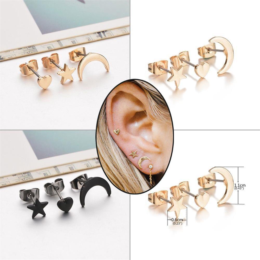 Phong cách cổ điển Giới tính Chất liệu hợp kim Hình dạng Màu “ Vàng Silver ” Đen Kích thước như hình ảnh Gói “ 1 bộ = 3 túi PCsopp Bông tai Bộ Ear Stud Trang sức Moon Star Heart Punk Nhỏ xíu Tối giản Đơn giản Bữa tiệc Đáng yêu