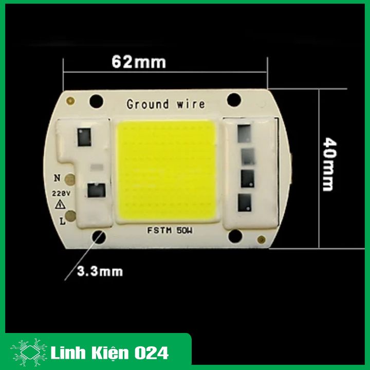 • Công suất: 50W • Điện áp: 220VAC • Độ sáng: 100LM / W • Phân loại: Ánh sáng trắng / Ánh sáng ấm • Nhiệt độ màu: 6000K • Kích thước: 6.2 x 4 cm • Đường kính lỗ cố định led: 3.3mm • Được sử dụng cho đèn pha, đèn sân khấu, đèn chiếu sáng cao , đèn đường để thay thế chip.,.. ============ THÔNG TIN THÊM VỀ SẲN PHẨM 🔸 Xuất xứ: Trung Quốc 🔸 Nhà cung cấp: Linh Kiện 024 🔸 Hotline: 097.8618.794 🔸 Địa chỉ: 441 Lĩnh Nam, phường Lĩnh Nam, quận Hoàng Mai, Hà Nội