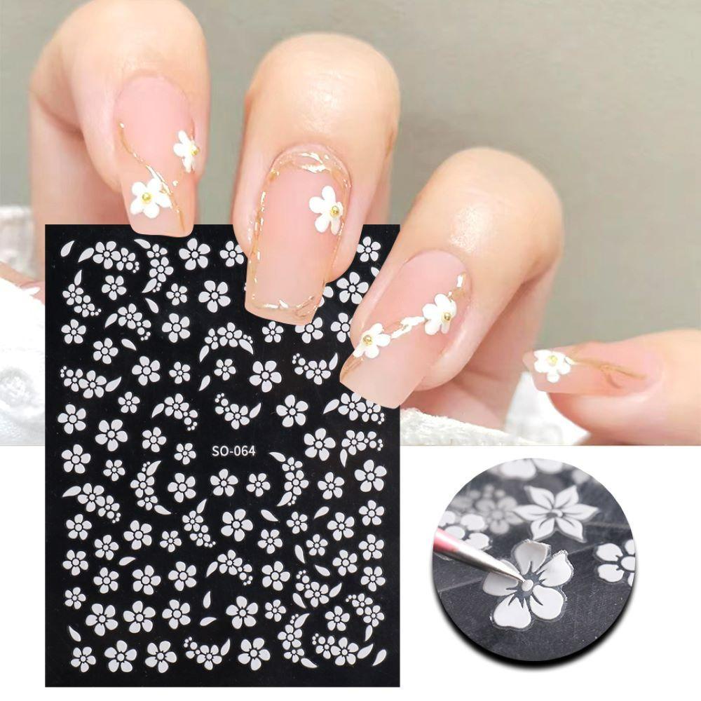 Nail Sticker#3D#White#Five Petal Flower Design#Adhesive#Slider Decals#DIY#Manicure#Nail Art Decorations#New