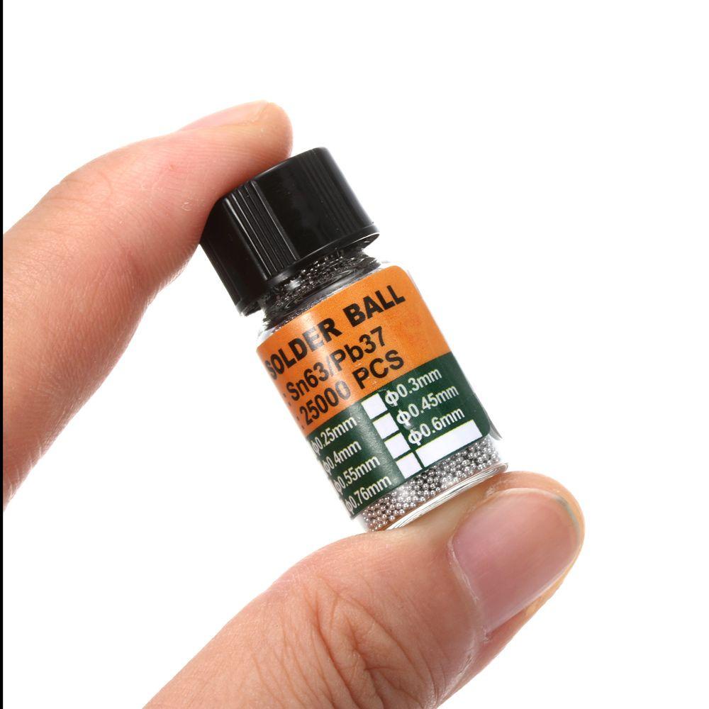 1 chai Bga Reballing Balls (0,25mm,0,3mm,0,35mm,0,4mm0,0.45mm,0,5mm0,55mm0,6mm0,0.65mm) Bóng hàn hàng đầu Bga cho các công cụ sửa chữa Bga Thương hiệu mới và chất lượng cao . Hàn (Tin) Balls là sự lựa chọn tốt nhất của IC bóng lại . Nó được sử dụng thay cho chân trong cấu trúc gói thành phần IC . Tình trạng " Thương hiệu mới Giải đấu bóng ’ Sn63 / Pb37 Tiêu chuẩn 'Có sẵn RoHs & Đã kiểm tra SGS Kích thước “ 0,25mm,0,3mm,0,35mm,0,4mm0,0.45mm0,5mm0,6mm0,6mm0,65mm0,65mm Số lượng - 25.000 PCS mỗi chai Gói bao gồm '25000 cái Chú ý đến 1.1 cm '10mm '0.39 inch. 2.Xin vui lòng cho phép lỗi 1-2mm do đo lường thủ công và hãy chắc chắn rằng bạn không nhớ trước khi đặt hàng . 3.Vui lòng hiểu rằng màu sắc có thể tồn tại quang sai màu khi các vị trí khác nhau của hình ảnh . Bóng hàn BGA Reballing Balls dẫn đầu cho IC Chip sửa chữa làm lại Công cụ hàn Phụ kiện hàn 0,2-0,65mm Sn63-Pb37 Chất liệu thiếc nhiệt độ thấp