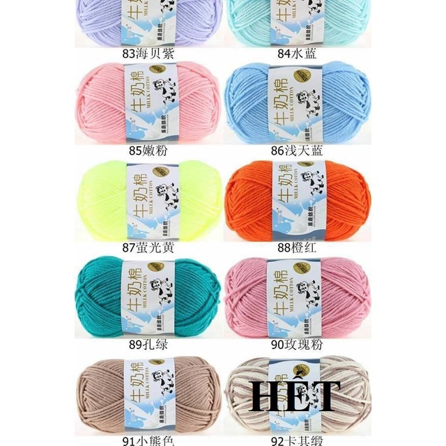 Mỗi màu sắc lại có 3 đến 4, có khi tới 5 tông màu từ nhạt tới đậm giúp các bạn có thể dễ dàng phối màu. Bảng màu len chạy số từ mã 01 đến mã 91 rất phong phú, đa dạng và tươi sáng, Len milk bò không chỉ đan khăn, đan áo, đan mũ cho người lớn mà các bạn còn có thể làm đồ cho bé mặc và thú bông cho bé chơi nữa.