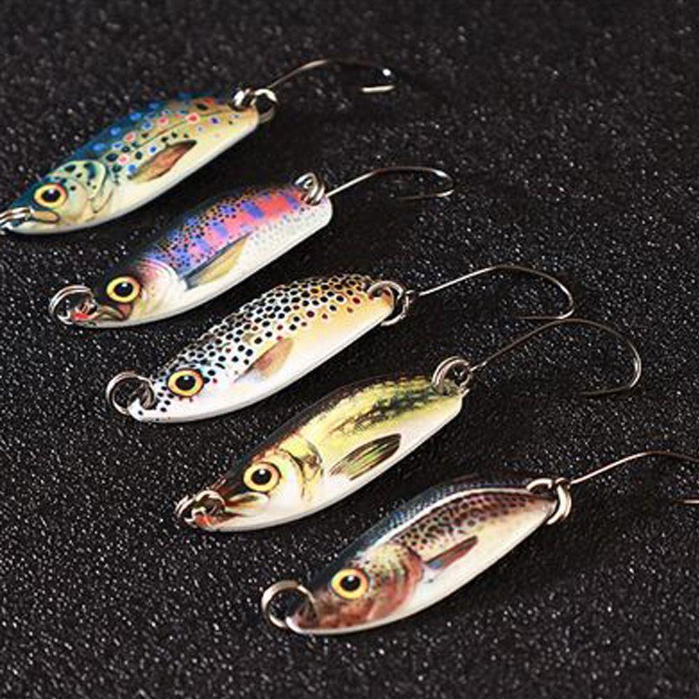 5 cái Câu cá Mồi kim loại Thìa Con quay 3D In Crank Mồi Lông Treble Móc Sequins Tiếng ồn Paillette cá hồi Bền mini 3g 5g Di động