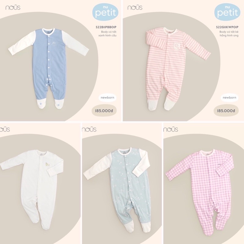 Giới thiệu Bộ liền thân BODY có tất Nous sơ sinh chất petit siêu mềm vải mỏng hè