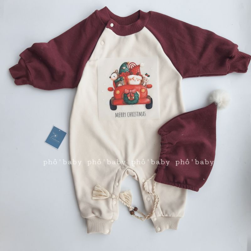 Giới thiệu bộ liền thân nỉ bông tay ranglan Đỏ Đô Giáng Sinh cho bé (chưa kèm mũ)