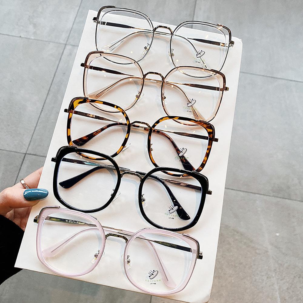 Tổng chiều rộng khung - 149mm Kính chặn Kính quang học Kính đeo mắt Kính trong suốt Nhựa vuông Chống ánh sáng xanh Phụ nữ Nam giới Kính máy tính Kính mắt Hàn Quốc Thời trang quá khổ Retro