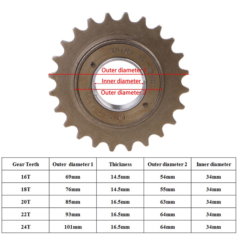 Bmx Bike Race 16 '18 '20 '22 '24T Răng một tốc độ bánh răng tự do Thương hiệu mới và chất lượng cao Bánh xe tự do 16-24 răng tốc độ đơn cho xe đạp . Bánh xe tự do này được sử dụng trên xe đạp đua có hoặc không có xe đạp . Cần hoàn thành chiếc xe đạp bmx trường cũ đó Thích hợp cho xe đạp Fixed Gear Bike . Bánh đà tốc độ đơn lẻ có thể tháo rời Chất liệu - Kim loại Kích thước “ 16T 18T 20T 22T 24Thaprox) Màu sắc như hình ảnh được hiển thị Số lượng * 1 cái Lưu ý " Không có gói bán lẻ Xin vui lòng cho phép lỗi 1-3mm do đo lường thủ công. xin hãy chắc chắn rằng bạn không nhớ trước khi bạn trả giá . Do sự khác biệt giữa các màn hình khác nhau , hình ảnh có thể không phản ánh màu sắc thực tế của mặt hàng . Cảm ơn bạn
