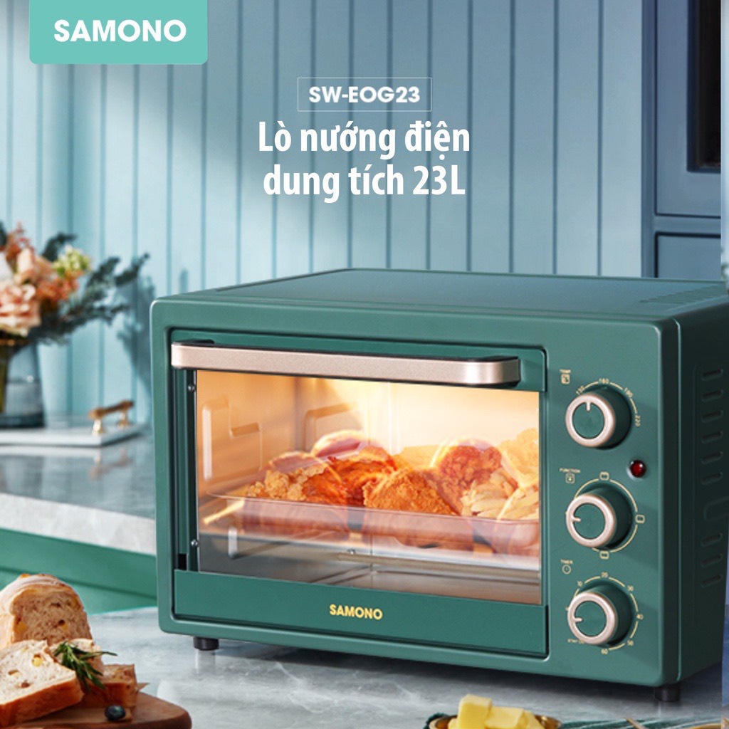 Sản phẩm Lò nướng điện SAMONO SW-EOG23 luxury dung tích lớn 23L với 3 chế độ nướng thức ăn - Hàng chính hãng bảo hành 12 tháng đang có giá bán là 990,000đ. Hiện tại, đang có hàng sẵn tại shop của chúng tôi trên sàn TMĐT Shopee. Quý khách có thể ĐẾN NƠI BÁN để vào shop chúng tôi đặt mua online, trả góp, ship hỏa tốc, thanh toán thẻ visa/master, thông tin xuất hóa đơn đỏ (VAT) hay cần có thêm nhiều thông tin về sản phẩm.