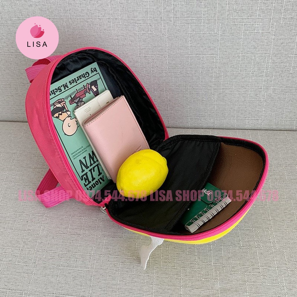 ✅ THÔNG TIN SẢN PHẨM: • Chất liệu: nắp nhựa chống thấm nước, chống va đập, mặt sau là vải dù siêu nhẹ thoáng khí • Kích thước: 22x20x10cm phù hợp cho bé 1-5 tuổi • Balo có chia ngăn, có ngăn nhỏ đựng thêm đồ