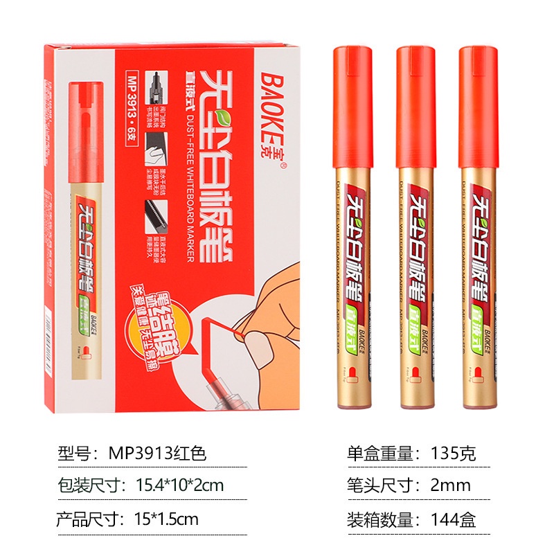 Đặc điểm: - Viết tốt, trơn, êm trên bảng trắng, thủy tinh và những bề mặt nhẵn bóng. - Bề rộng nét viết 2-3 mm - Sử dụng mực mới, tốt, màu mực đậm, tươi sáng, dễ dàng xóa sạch ngay cả khi viết trên bảng lâu, không để lại bóng mực sau khi lau bảng và các bề mặt nhẵn bóng, Không bị khô mực khi quên không đóng nắp búp - Có 3 lựa chọn màu sắc. - đóng gói 01 cái