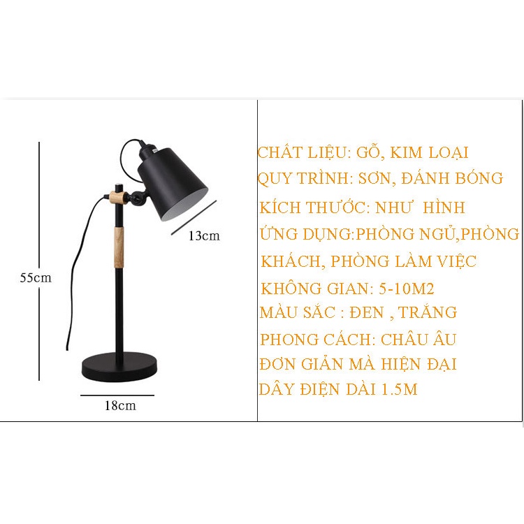 Đèn bàn Vintage DB001 - Tặng kèm bóng LED chống lóa Đèn được thiết kế độc đáo, sáng tạo. Thân đèn được làm bằng gỗ kết hợp kim loại sơn tĩnh điện chống gỉ 100% Thông tin chi tết: _Chiều cao đèn: 55cm _Đường kính chao đèn: 13cm _Đường kính đế đèn: 18cm _Cân nặng: 1,5kg _Màu sắc: đen, trắng