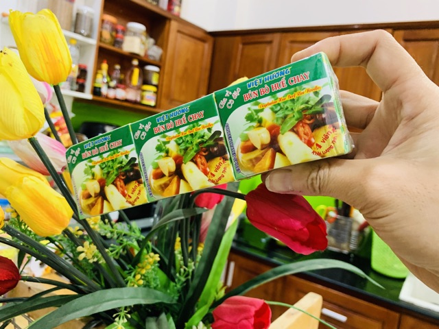 Hướng dẫn sử dụng: Dùng làm gia vị cho món bún bò huế chay • Chuẩn bị: (Phần ăn dành cho 1 người) 500 ml nước, 150 g bún tươi hoặc 75 g bún khô, 1 viên gia vị Bún Bò Huế • Cách Dùng: * Khi dùng bún tươi: 1. Cho 1 viên gia vị Bún Bò vào 500 ml nướcđun khoảng 2 - 3 phút. 2. Cho bún tươi vào nồi, đun sôi thêm khoảng 1 phút và dùng với rau.