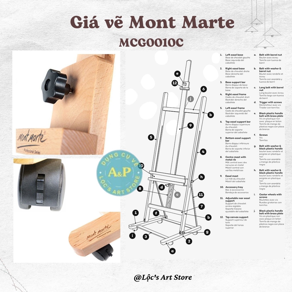 Giới thiệu [Lộc'sArtStore] GIÁ VẼ CAO CẤP GỖ SỒI MONTMARTE MCG0010C - TÙY CHỈNH ĐỘ CAO (150-240cm)