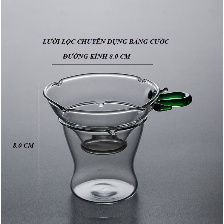 – Chất liệu: Thủy tinh chịu nhiệt – Họa tiết: tùy mẫu, kích thước: Cao 8.0 cm, Đường kính phễu lọc 8.0 cm – Màng lọc: Lưới lọc chuyên dụng siêu mịn, đảm bảo an toàn cho sức khỏe và không hoen gỉ – Bộ sản phẩm gồm: Phễu lọc và đế gác phễu lọc – Xuất xứ: Đài Loan