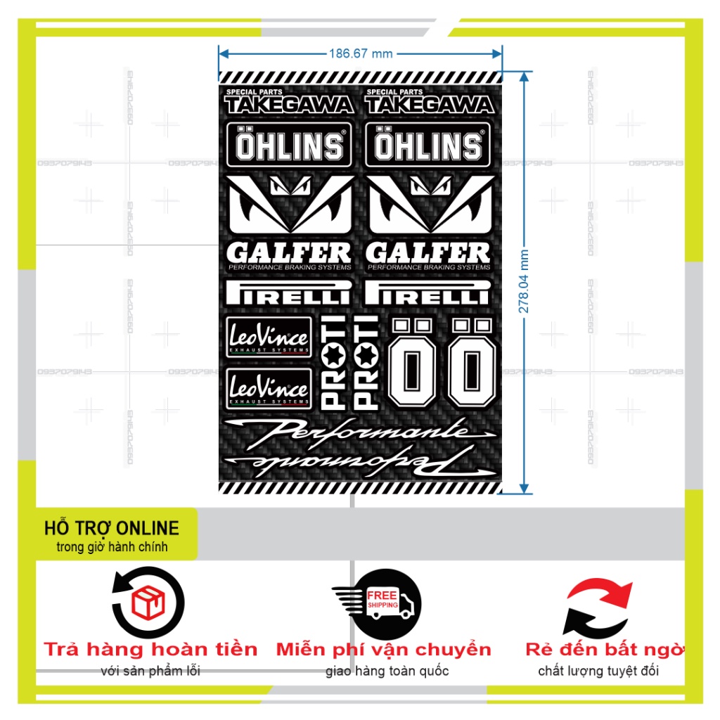 THÔNG TIN SẢN 1 bộ đủ dán 1 xe Chất liệu: Decal cao cấp Đặc tính: Tem dán cao cấp, CHỐNG NƯỚC siêu tốt, sản phẩm sáng bóng cực bền với họa tiết đặc sắc Công dụng: Trang trí. Bảo hành trọn đời KHÔNG bay màu Trọng lượng: 400g HƯỚNG DẪN SỬ DỤNG: 1/ Chùi, lau, làm sạch bề mặt dán 2/ Tách lớp tráng của keo dính và dán vào bề mặt của sản phẩm 3/ Tách lớp tráng của keo dính ở mặt đối diện còn lại và dán vào bề mặt muốn dán 4/ Sử dụng máy sấy tóc để tăng độ bám dính và giữ độ dính của sản phẩm lâu hơn 5/ Khi dán bóc đâu dán đó (miết từ từ từng ít một ) 6/ Dùng máy khò để có thể tăng độ co dãn và bám dính của Tem 7/ Tuyệt đối không được sử dụng nhiệt hoặc lửa khi dán decal CROM VÀ DECAL 7 MÀU. 8/ Sẽ có những sai số do kích thước ko chuẩn như zin được, nên xin quý khách thông cảm cho những sai số * Thời gian vận chuyển tới tay khách hàng : + Nội thành TPHCM : từ1-2 ngày (tính kể từ ngày shiper nhận hàng) + Khu vực miền Nam : từ 3-4 ngày. (tính kể từ ngày shiper nhận hàng) + Khu vực miền Trung : từ 4-5 ngày. (tính kể từ ngày shiper nhận hàng) + Các tỉnh miền Bắc : Từ 4-6 ngày. (tính kể từ ngày shiper nhận hàng)