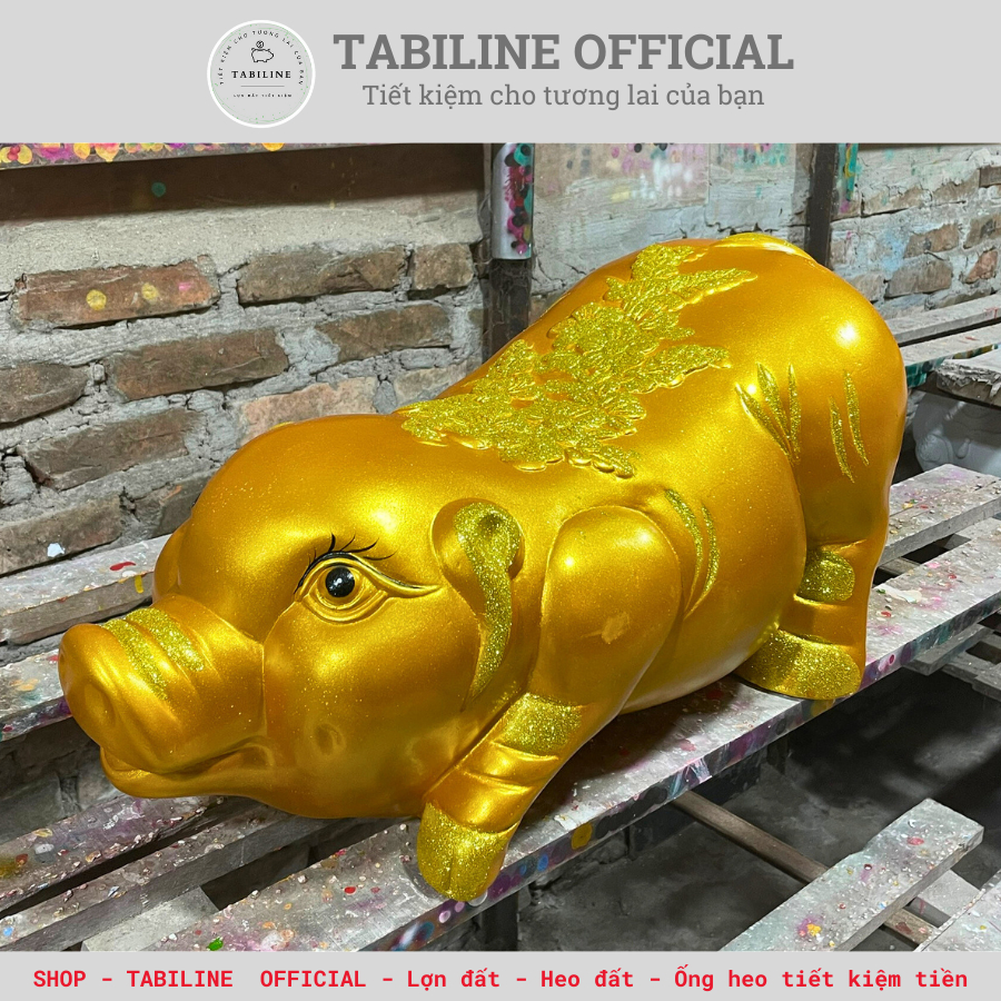 Giới thiệu Lợn đất heo đất ống heo tiết kiệm tiền TABILINE dáng dài size max vàng đồng vip LD73